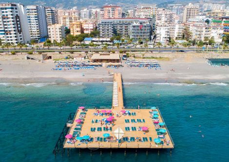 Хотелът се намира на 135 км. от летище Анталия, на 7 км. от центъра на Алания, на брега на морето в района на Махмутлар. Построен е през 2001г. и е реновиран през 2020г. с обща площ 12 000 м2.