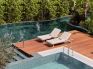 Bayou Villa 1 Bedroom - С площ от 246 м2, вила с единична спалня се състои от вътрешна площ от 109 м2 с всекидневна, спалня, 2 бани и частна градина от 137 м2, включваща отопляем частен басейн от 25 м² с морска вода, тераса с шезлонг, маса за хранене и градински мебели и място за слънчеви бани и почивка. Излиза се и към басейна лагуна с прясна вода.