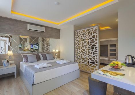 В стаите: HOTEL TURAN PRINCE 5* се състои от основна хотелска част (състояща се от 4 блока) и 28 двуетажни вилни корпуси - Park Villa, разположени от другата страна на основните сгради и има път между главните сгради и сградите на Park Villa. През 2014-2015 г. е извършена обща архитектурна реновация и е модернизирано обзавеждането в стаите, а през 2019 г. са обновени баните във всички стаи в хотелската част. Хотелът разполага с общо 458 стаи, които са оборудвани с климатик (централен в основните сгради и индивидуален във вилната част), плоскоекранен телевизор със сателитен приемник, телефон с директно избиране, баня с душ, сешоар, сет за приготвяне на кафе и чай, минибар, сейф, безплатен достъп до Wi-Fi (безжичен интернет), под- ламиниран паркет, ежедневно презареждане на минибара с вода и безалкохолни напитки.