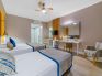 В стаите: Хотелът разполага с общо 215 стаи, от които 215 стаи разположени в 1 седеметажна основна сграда Main building и 110 стаи разположени в 1 шестетажна анекс сграда Theodora building. Стаи Main building: 79 Standard room main building (28 – 36 м2), 20 Family room main building (2 спални – 40-50 м2), 6 Penthouse Rooms. Стаи Theodora building (Нов блок, открит 2013 г.): 84 Theodora building Standard room (24-30 м2), 36 Theodora building family room (2 спални или на 2 етажа -тип мезонет – 40-50 м2). Всички стаи са оборудвани с климатик, телевизор, телефон, баня с душ/вана, сешоар, минибар (2 пъти седмично се зарежда с безалкохолни напитки, безплатно), сейф (срещу заплащане). Почистване на стаите и смяна на кърпите – всеки ден, смяна на спалното бельо – 2 пъти в седмицата.