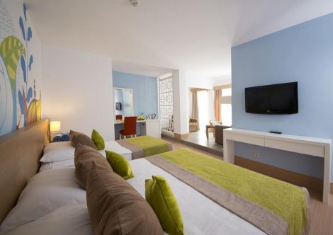 За деца: кошара, по заявка, детска анимация, мини-клуб/макси-клуб (4-12 години, 13-17 години), мини дискотека, 2 външни детски басейна, 3 пързалки, детска площадка, зала за игри, детско меню.