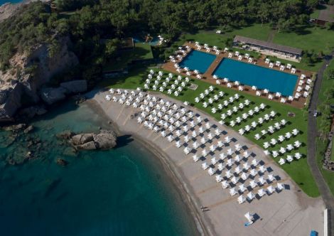 Плаж: На територията на хотела (100 м от основната сграда) се намира частен плаж с малки камъчета. Два частни 200-метрови залива, 400-метров частен плаж, 30-метров плаж за деца. Шезлонги, чадъри, матраци, плажни кърпи са безплатни. Входът към морето е малко камъче. Кабини за преобличане, душ, спасител на плажа, бар. Частните павилиони са платени. Обслужване на хладни кърпи и бърсане на слънчеви очила на плажа (безплатно).