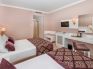 В стаите: Хотелът разполага с 416 стаи. Всички стаи са оборудвани с: климатик, телефон, телевизор, баня с душ, сешоар, мини бар(безплатно само при настаняване), сейф, балкон. Почистване на стаите - всеки ден. Standard room (25 m²), Family room (32 m²), Duplex room (45 m²)