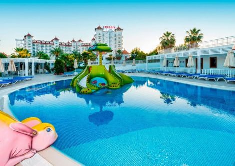 На територията на хотела: Основен ресторант, а-ла-карт ресторант(рибен и османски), лоби бар, бар на басейна, бар на плажа, 2 открити басейна, 1 закрит бесейн, басейн с изкуственни вълни, водни пързалки, дискотека, детска площадка, фитнес, сауна, джакузи, тенис на маса, дартс, лека анимация, турска баня, интернет.