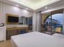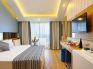 Love Suit: - 22 м2 и с френско легло. Всички стаи са оборудвани с баня (душ), WC, телефон, сейф (безплатно), минибар, сателитна телевизия, сешоар, VRV климатична система. Тези апартаменти имат собствена тераса и джакузи. Апартаментите Love имат директен изглед към морето и басейна.