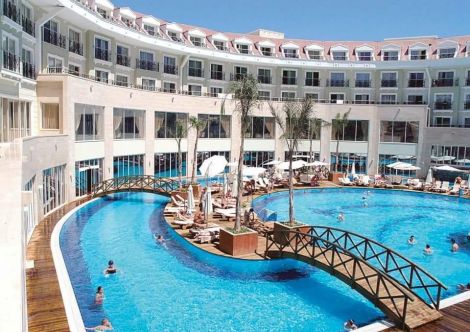 Основен ресторант, 4 бара, 1 открит (само през летния период) и 1 закрит басейн (само през зимния период), водни пързалки, магазини, SPA център, 2 конферентни зали. За децата: Мини клуб (4-8 г.), анимация. Безплатни услуги: Турска баня, сауна, фитнес, дартс, тенис корт, аеробика, анимация, интернет (в лоби). Платени услуги: Масаж, център за красота, фризьор, магазини, билярд, интернет кафе, видеоигри, химическо чистене, лекар, детегледачка, водни спортове, наем на топки и ракети за тенис, осветление за тенис кортовете. ПЛАЖ: Собствен, пясъчен, на 400 м. от хотела. Чадъри и шезлонги на плажа – безплатно.