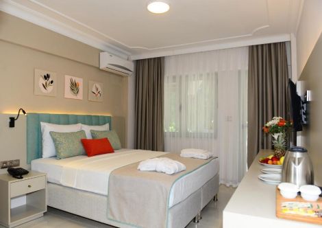 Безплатни дейности - Аеробика, Различни шоуа, кърпи за басейна и плажа, Слънчеви чадъри, Възглавници, Шезлонги, Тенис на маса, Плажен волейбол, Сауна, Турска баня, Безжичен интернет, Сейф (в стаите), 1 а ла карт ресторант за престой над 6 нощувки