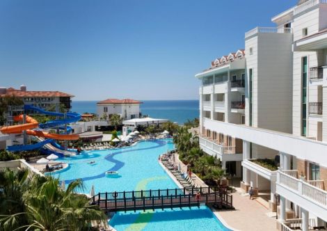 На територията на хотела: Основен ресторант, 2 A ла карт ресторанта с предварителна резервация, 1 безплатно посещение за седмица), 5 бара включително диско бар, търговски център, доктор, вътрешен басейн, открит външен басейн, детски басейн, 4 водни пързалки, мини голф, тенис корт, фитнес зала, СПА център