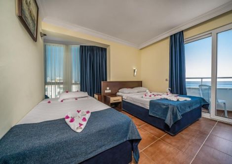Разположение: Перфектно местоположение, само на метри от плажа на Алания. Летище Анталия е на час и половина с кола от хотела, а градската част на Алания с множество търговски зони и заведения е на 5 км от хотела.
