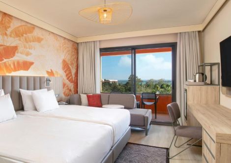 Хотелът разполага с общо 347 стаи, разположени в основна сграда, от които 77 Standard room garden view (изглед градина - 22 м2), 58 Standard room lake view (изглед езеро - 22 м2), 85 Standard room sea view (изглед море - 22 м2), 56 Comfort Standard room (спалня + легло кенгуру - 22 м2), 38 Bunkbed standard room (спалня + двуетажно легло - 22 м2), 12 Junior family room (2 спални, 1 баня, 37 м2), 20 Terrace family room (2 спални, 1 баня, тераса - 45 м2). Всички стаи са оборудвани с климатик, телевизор, телефон, баня с душ, халат и чехли, сешоар, минибар (вода, безалкохолни напитки и бира – безплатно зареждане всеки ден), сет за кафе/чай, сейф (безплатен). Почистване на стаите и смяна на кърпите - всеки ден, смяна на спално бельо и хавлии – през 3 дни.