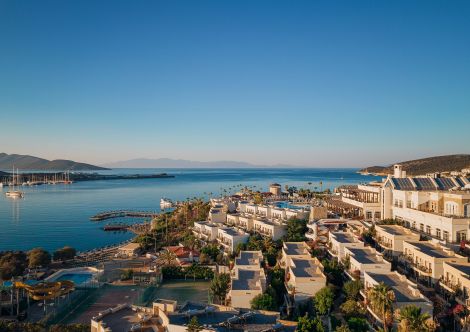 Намира се на 37 км от летище Бодрум, на 4 км от центъра на Бодрум, в района на Гюмбет, на брега на морето. Построен 1999 г., на обща площ от 38 000 м². Реновиран 2023 г.