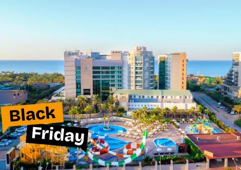 Хотелът се намира на брега на морето, в района на Лара, на 12 км. от центъра и 10 км. от летището на Анталия. Построен е през 2005г. и е последно реновиран 2019-2020г. с обща площ от 33 000 кв.м.