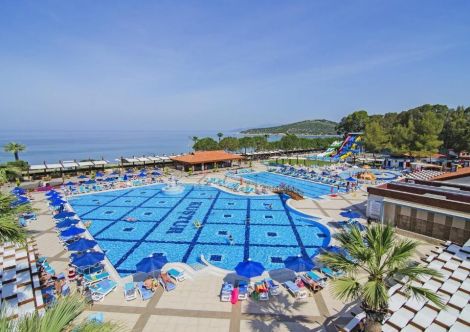 Намира се на 70 км от летище Измир, на 130 км от летище Милас, на 4 км от центъра на Кушадасъ, на 50 м от брега на морето. Построен през 1998 г., поетапно разширяван в периода 2004-2008 г., с обща площ 170 000 м², където тюркоазено синьото на Егейско море се слива с огромна гора от борови дървета с красиви цветя. BUNGALOW GARDEN ROOMS са реновирани през 2014 г., SUPERIOR ROOMS са реновирани през 2021 г. , FAMILY ROOMS през 2022 г.