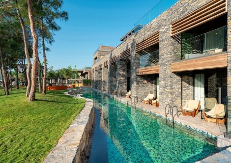 Разположение: Хотелът е разположен на площ от 110.000 м² и се намира на 15 км. от летище Милас, на 20 км. от центъра на Бодрум, в района на Гюверджинлик. Разположен на брега на морето, отворен през 2018 г.