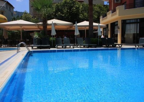 Нашият хотел с 4 звезди е на 150 метра от плажа. Центърът на града е на 2 км, а Ичмелер - на 5 км. Разстоянието до летището е 95 км. Нашият хотел разполага с 2 открити басейна, 2 детски басейна, турска баня, сауна, фитнес център, развлечения, спортни дейности, билярд, тенис на маса, турска вечер в определени дни, градина, телевизионна зала, стая за игри, интернет връзка.