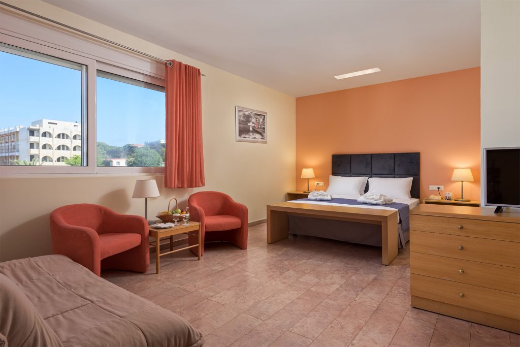В стаите: баня с душ, сешоар, телевизор, климатик, хладилник.