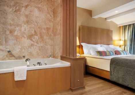 Хотелът разполага общо с 257 стаи (28-33 м²), разположени в четири различни блока, 11 апартамента (58-81 м²), 12 луксозни вили (51-160 м²) и 3 премиум апартамента. Стаите са с изглед към морето, басейна или градина. Всички стаи са оборудвани с климатик, телевизор,телефон, баня с душ/вана, сешоар, сет за чай/кафе, минибар (вода, безалкохолни напитки - зарежда се ежедневно, безплатно), сейф (безплатен), WI-FI интернет, балкон. Почистване на стаите - всеки ден, смяна на спалното бельо и кърпите - 3 пъти в седмицата.