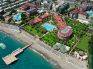 Комплексът разполага със собствен пясъчно-чакълест плаж. Има кей и платформа. 2 открити басейна (800 кв.м и 400 кв.м), детски басейн (120 кв.м), 2 закрити басейна, 5 водни пързалки (2 със спускане в морето). На плажа и при басейна чадъри, шезлонги и матраци се предоставят безплатно, плажните хавлии са срещу заплащане.