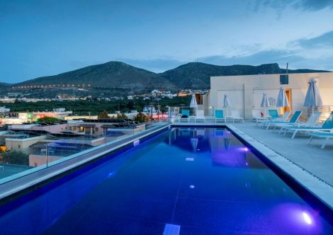 Golden Beach Hotel 4* се намира на първа линия до пясъчния плаж в Херсонисос, на северното крайбрежие на остров Крит. Хотелът е само на 500 метра от центъра на курорта, където гостите могат да открият разнообразие от магазини, ресторанти и оживен нощен живот. Международното летище Никос Казандзакис в Ираклион е на около 28 км разстояние.