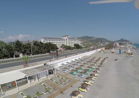 Разположение: First Class Hotel Alanya 5* се намира на 16 км от центъра на Алания, на 4 км от Махмутлар, на 140 км от международно летище Анталия, на 50 м от брега на морето през пътя. Хотелът е разположен върху компактна територия от 9,000 м2.