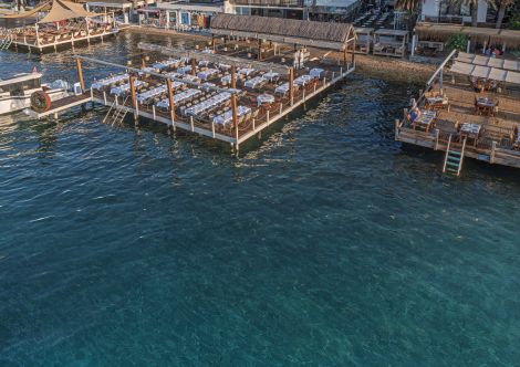 Намира се на 44 км от летище Бодрум, на 18 км от центъра на Бодрум,в района на Тюркбюкю, на брега на морето. Реновиран 2025 г.