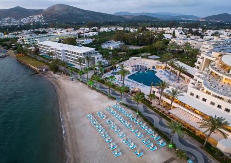 Хотелът е разположен на 50 км от летище Милас, на 20 км от центъра на Бодрум, в района Тургутрейс, на 1 км от центъра на Тургутрейс, на брега на морето. Разполага с площ от 30.000 m², последно реновиран изцяло през 2022/3 година.