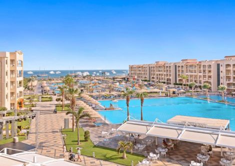 Намира се на 3 км. от летище Хургада, на 10 км. от центъра на Хургада, на брега на морето. Посторен през март 2016 г.