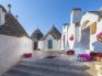 Закуска. Целодневна екскурзия до приказната столица на трулите Алберобело и до Локоротондо – едно от стоте най-красиви малки градчета в Италия, притежател на световен рекорд (включена в цената). Алберобело – посещение на приказната столица на трулите. Алберобело е град с толкова особено обаяние, че е трудно да се ориентирате къде се намирате. Столицата на Трулите сякаш ви пренася в детска книжка с приказки. Трулите са малки бели къщички от варовик с конусовидни покриви. Градени в миналото без всякаква спойка, те наподобяват по форма ескимоско иглу. В близост до главния площад се намира църквата „Санта Лучия”, както и градския музей „Територио”. Музеят е направен от 10 трули обединени в една. В музея може да се види историята на създаването на трулите и как обитателите им са живеели в тях в миналото. Алберобело има и други музеи, които предлагат на туристите сувенири и почти всичко, което една селска къща произвежда. Някой от по-интересните са: Музея на виното и Музея на зехтина. В цената е включена дегустация на домашно произведени ликьори и сладки. Локоротондо – едно от 100-те най-красиви малки градчета в Италия, чийто историческия център е застроен в овална форма, откъдето идва и името му. Градът е записан в книгата на рекордите на Гинес, заради петте гласни „о“ в името си. Това е град на красивите балкони, повечето от които си имат номера. Градът е известен и със своите вина.