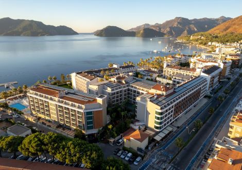 Хотелът се намира на 120 км. от летище Милас, на 99км от летище Даламан, на 3 км. от центъра на Мармарис, на брега на морето. Построен през 1995 г. (блок „А“) и 1998 г. (блок „Б“) с обща площ от 9 000 м2, последно реновиран през 2009 г. (блок „А“) и 2013 г. (блок „Б“).