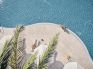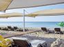 Собствен, пясъчен, с дължина на плажната ивица 250 м. и кей 400 м2. Чадъри, шезлонги и матраци на плажа и при басейна - безплатно. Плажни кърпи – безплатно.
