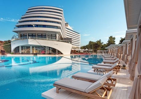 Основен ресторант, 3 а - ла - карт ресторанти (италиански, турски и рибен), 3 открити басейна, закрит басейн, закрит детски басейн, водни пързалки, барбекю, сладкарница, лоби бар , диско бар, витамин бар, боулинг бар, амфитеатър, кино, музика на живо, дискотека (безплатно).