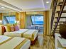 Двуетажна стая 47 кв.м с балкон и две отделни спални със свързваща врата, с едно двойно и две единични легла, подходяща за 4+1 или 3+2 души, с две бани с душ и тоалетна, климатик, минибар, сейф, два LCD телевизора, безплатен Wi-Fi, ежедневно почистване и всички необходими удобства.