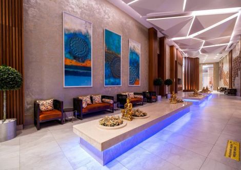 Оснорен ресторант, а ла карт ресторанти (средиземноморски, турски, суши, стек), 7 бара, дискотека, външен басейн, басейн с 3 пързалки, полу-олимпийски басейн, вътрешен басейн, анимация и различни спортни занимания, 2 конферентни зали. Безплатни услуги: турска баня, сауна, фитнес, водно поло, водна гимнастика,боча, дартс, тенис на маса, тенис на корт, плажен волейбол, баскетбол, мини футбол. Платени услуги: масажи, Аюрведа, различни терапии за лице и тяло, фризьорски салон, лекар, химическо чистене, коли под наем, водни спортове, За децата: детски басейни външен и вътрешен, мини клуб, мини диско, детска площадка,