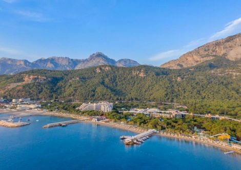 Разположение: Хотелът се намира на 50 км. от летище Анталия, на 25 км. от центъра на Анталия, в района на Кемер, на брега на морето. Построен през 2005 г. с обща площ от 250 000 м2, последно реновиран през 2012 г.