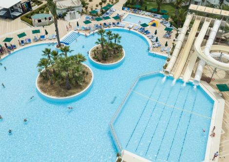 На територията на хотела: Основен ресторант Meridian, снак бар, няколко а ла карт ресторанта ( едно безплатно посещение по време на престоя след предварителна заявка) - а ла карт ресторант със средиземноморска кухня (платен), а ла карт ресторант Sofra с тунизийска кухня (платен), а ла карт ресторант El Pescado с морска кухня (платен), лоби бар, бар басейн, диско бар, мавританско кафене (срещу заплащане), анимация, аеробика и водна аеробика, плажен волейбол, тенис на маса, дартс, боча, външен басейн на две нива с водни пързалки, вътрешен басейн с прясна вода (затворен през Юли и Август), 24 часова рецепция, сувенирен магазин, конферентна зала.