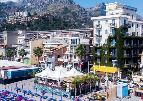 Плажът на хотела се намира само на 10 метра от него, а летището на град Катания е на 68 км.