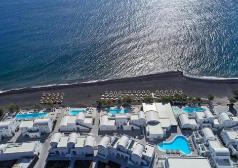 Costa Grand Resort & Spa е курорт, разположен точно на плажа с черен пясък в известното и космополитно село Камари.