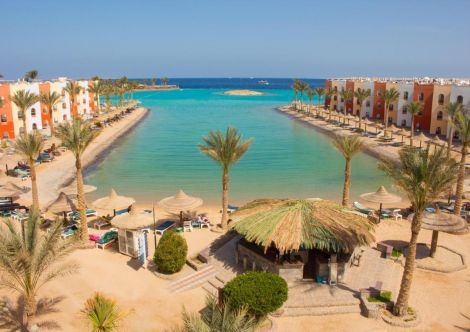 Намира се на 8 км. от летище Хургада, на 3 км. от центъра на Хургада, на брега на морето.