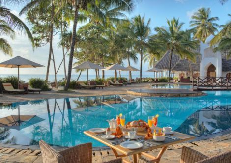 Намира се на 45 минути с кола от летище Занзибар и на 39 км. от Каменния град (Stone town). Хотелът отваря врати през 2008 г и се намира на брега на Индийския океан, построен в традиционен стил. Хотелът се намира до съседния хотел от същата верига Bluebay beach resort hotel.