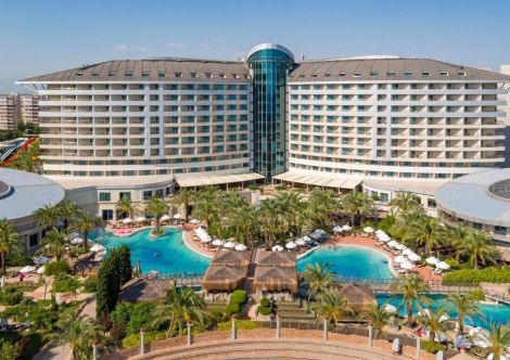 Хотелът се намира само на 500 метра от плажа Лара и е разположен върху площ от 72 декара богато озеленени терени. Хотел Royal Wings е на 15 километра от международно летище Анталия и на 17 километра от центъра на Анталия. Плажът е само на 500 м от комплекса.