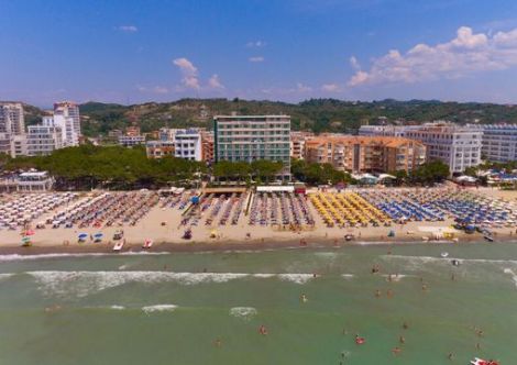Собствен пясъчен плаж, на 50 м от хотела. Чадъри и шезлонги - безплатно.