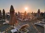 Собствен, пясъчен на 50 м. от хотела. Чадъри и шезлонги при басейна и на плажа - безплатно.