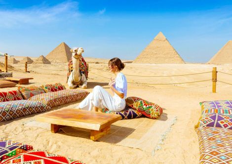 4. Екскурзия до Кайро със самолет. Посещение на Пирамидите – едно от Седемте чудеса на Древния свят и Сфинкса в Гиза – най-големият, най-старият и най-известният от безбройните запазени сфинксове в Египет. Пирамидите в Гиза от дълго време са най-посещаваната атракция около Кайро. От времето на тяхното изграждане пирамидите в Гиза въплъщават древността, мистерията – и дават повод за невероятни хипотези. Пирамидата на Хеопс е най-старата в Гиза и най-голямата в света, изградена ок. 2500 г. пр.н.е. от близо 2,3 милиона варовикови блокове, тежащи средно по 2,75 тона и придвижвани от 100 000 роби. Трите по-малки пирамиди в съседство принадлежат на Хеопсовите царици или сестри. Обяд в традиционен ресторант /включен в цената/. Посещение на Големия музей в Кайро (GEM), който пази най-голямата колекция с антики от времето на фараоните в света. В музея има 120 000 експоната, покриващи 5000 годишна история. Посещение на магазин за сувенири.