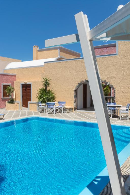 Местоположение: намира се в столицата Фира, на 200 метра от централните пешеходни улици. Непосредствено до хотела са разположени таверни, барове и сувенирни магазини.
