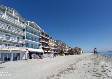 Собствен пясъчен плаж пред хотела. Безплатни чадъри и шезлонги срещу консумация от плажния бар.