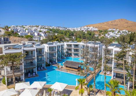 Намира се на 55 км от летище Бодрум - Милас, на 24 км от центъра на Бодрум, на 8 км от центъра на Тургутрейс, в район Акярлар, на 800 м от брега на морето. Построен 2009 г., на обща площ от 12 000 м².