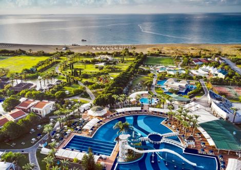 Основен ресторант „The Restaurant“„Pool Open Buffet”, Spice A-la-Carte Restaurant, Италиански ресторант Prima Cucina, Турски ресторант Taverna, Green & Grill Restaurant. Ресторантите Turkish Taverna, Spice и Prime Cucina A la Carte са само с резервация и гостите имат право да посетят всеки ресторант веднъж по време на престоя си. А-ла-карт ресторантите са отворени 6 дни в седмицата. Aegean Bar (Отворен 24 часа в денонощието, заплаща се след 00:00ч.), Pool bar, Chill Out Beach Bar, Disco/Chill Out Bar (23:00-02:00), Thea’s Coffee Shop & Juice Bar, 2 външни басейна (1900m², 480 m²), 1 вътрешен басейн (450 m²отопляем през май и октомври), 3 външни детски басейна и 1 вътрешен басейн (450 m², отопляем през май и октомври), 5 водни пързалки (2 за възрастни и 3 за деца), тенис корт, голф игрищe, СПА център, 3 конферентни зали, магазини, паркинг.