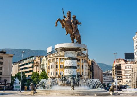 Отпътуване от София в 7.30 ч. от автогара "Сердика", в 8.00 ч. от Студена (бензиностанция "Шел"/ "МакДоналдс" на магистрала "Струма"), в 8.20 ч. от Дупница (бензиностанция "OMV"), в 9.00 ч. от Кюстендил (бензиностанция "Юг Ойл" на околовръстния път) по маршрут Гюешево - Крива Паланка - Скопие. Пристигане в Скопие следобед. Пешеходна разходка: старата железопътна гара, запазила спомена за трагичното земетресение през 1963 година, модерният център с дома-музей на Майка Тереза; "Камен мост" - символ на Скопие; стария квартал "Вароша"; крепостта "Скопско кале". Настаняване. Свободно време. По желание - вечеря в ресторанта на хотела, или вечеря в традиционен македонски ресторант с музика на живо и богато меню. Нощувка.